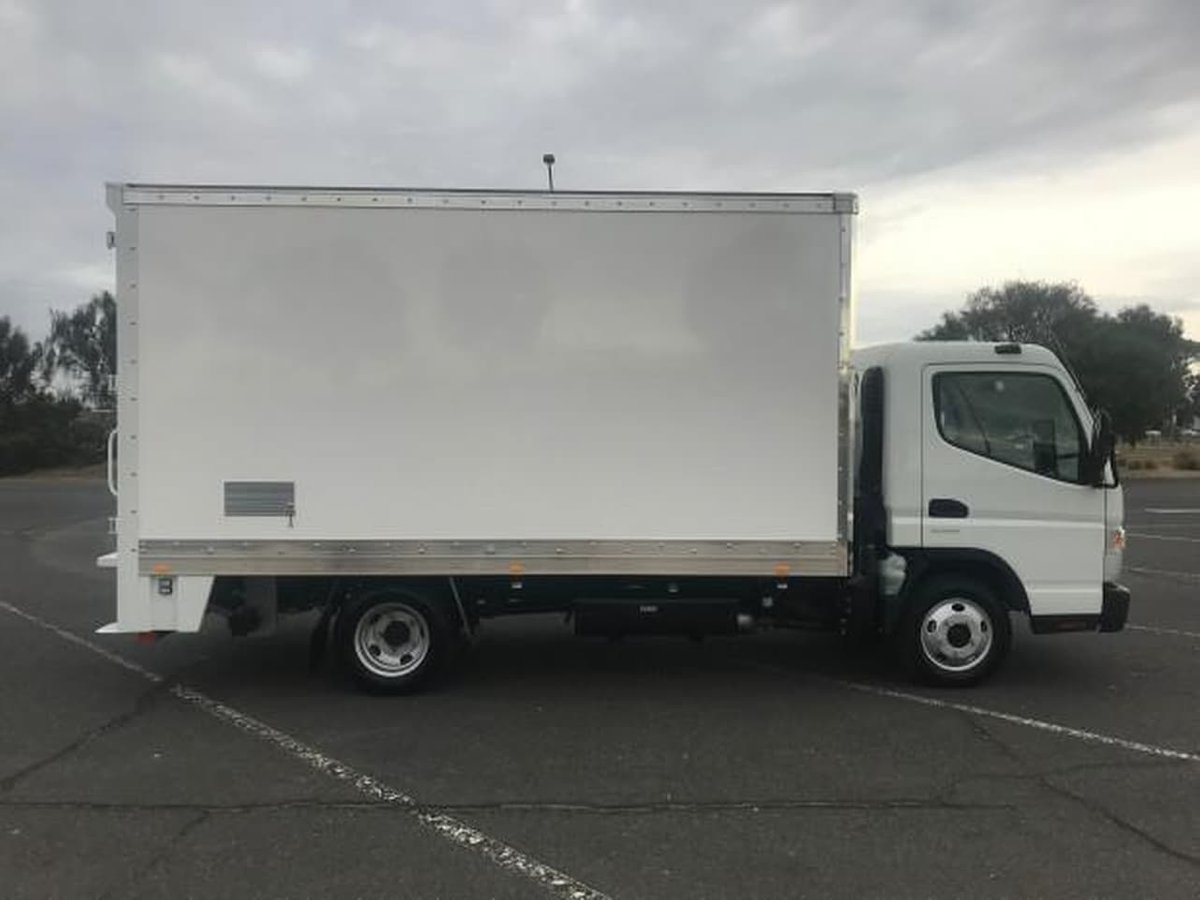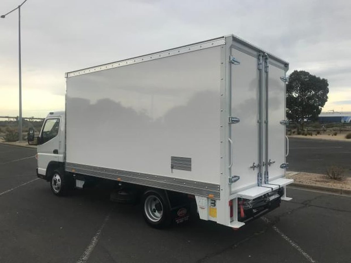 "2019 Plate Fuso Canter 515 wide can AMT Rental Spec Van Body, FRP Panel honeycomb construction, 4268mm Long X 2200mm Wide X 2135mm High, 3mm Chequerplate floor, Rear Barn Style Doors, Reverse Camera, D'Hollandia 600 kg Aluminium Tuckaway Tailgate, 5 Year or 200,000 kms Factory Warranty, Once Yearly or 30,000 kms Service Intervals, Factory Bonus - 2 Year or 60,000 kms in Free Servicing on all 2019 plate trucks!