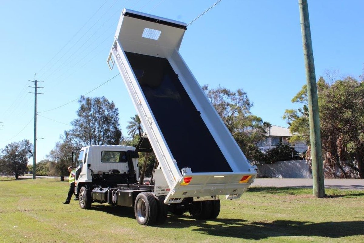 Twin under body hoists, PTO and pump, electric switches in cab for tipper control