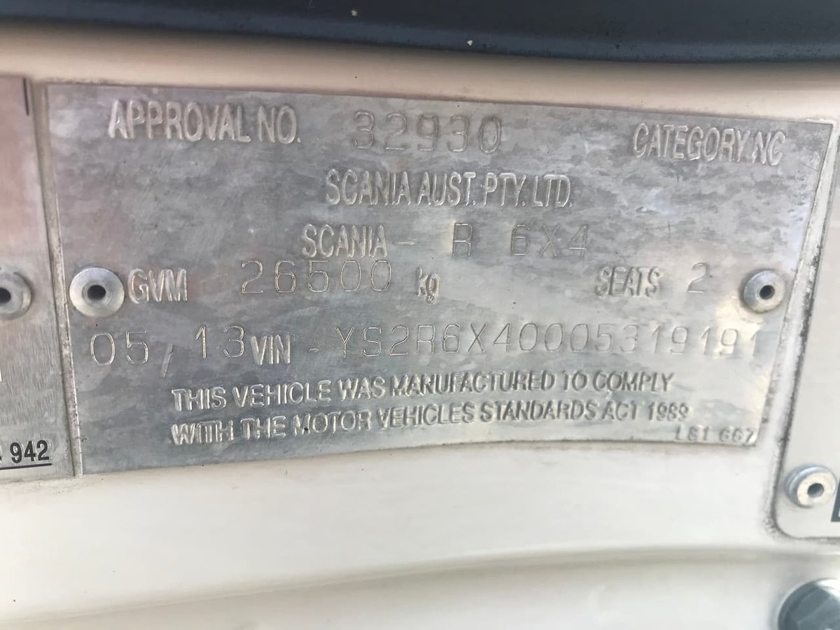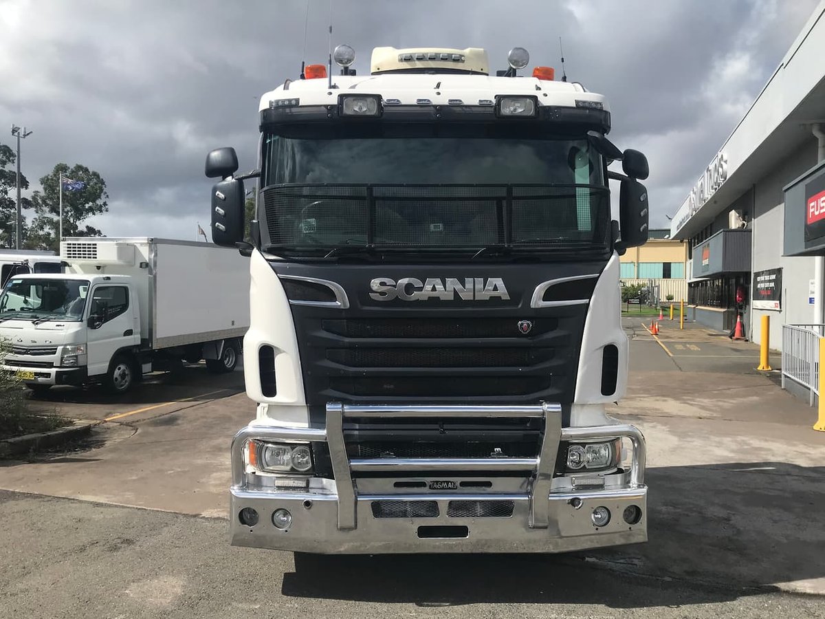 "2013 Scania R620 prime mover, 620Hp, 12 speed syncro transmission, scania rear axles on air suspension, Alloy bullbar, Alcoa's, Cab cooler, Safety beacons.